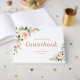 Den här gästboken har vackra vattenfärgblommor med temat guld och blommigt. Du kan anpassa texten och färg.