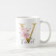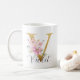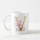 Elegant Rosa Blommigt Guld Brev Monogram V Kaffemugg