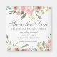 En elegant blommigt bukett av rosa peonier och elfenbensblommor i vattenmiljö ram denna vackra blommigt vår bröllop Spara datum magneter. Sage löv-sprit dekorerar mitt i den persikomatris med blommor som omger det vackra grått-skriptet på dessa chic kvadratmagneter.