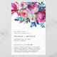 Modern blommigt budgetBröllopsprogram (tryckt på tunn skrivare papper) med peonier och ro i djärv och pulserande rosa med storslagna sprickor i tårblått och blått. Dessa ljusa Bröllopsprogram i jevelton färg är underbara under en sommar bröllop.