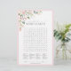 Modern, elegant-möhippa, "Ord Search", med blommigt av mjuk, vattenfärgad ro i skuggor av rosa, persikor och vit, med lush-grönt botaniskt löv i skuggor av kärlek och eukalyptus, och intill rosa. Anpassa dina frågor i mjuk, svart och accentuerad med vacker, modern, handskriven kalligrafi. En del av en samordnad svit. Se fullt här: https://www.zazzle.com/collections/elegant_pink_watercolor_floral_bridal_shower-119520534388034363 Kontakta designern om du vill ha fler produkter. Inbjudningskort för Elegant av upphovsrätt, alla höger reserverade.