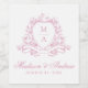 Elegant Rosa Blommigt Vapensköld Monogram Bröllop Vinflaska Etikett