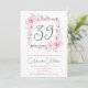 Elegant Rosa Blommigt Vattenfärg 39 födelsedag Inbjudningar
