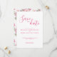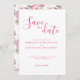Den här inbjudan till Bröllop spara datum innehåller ett blommönster för elegantens vattenfärg på kortets baksida. Ett vackert skript-teckensnitt kompletterat med modern text i shock rosa på inbjudan. Det här biet är redot för dig att anpassa dig efter detaljerna på din speciella dag. I en ständigt växande samling kan du bläddra i Elegant Rosa Blommigt Watercolor Bröllop Collection för matchande artiklar.