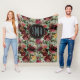 Elegant rosa blommor aqua mönster monogram fleecefilt