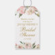 Anpassa denna eleganta blomsterdekoration för bröllopspresenter med vackra rosa rosor och peonior. Vacker anpassad presentetikett för vår- eller sommarbröllop skriven med chic, antikk guldskrift.