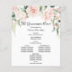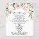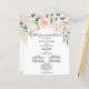 Elegant Quinceanera-program med två sidor med en vacker rosa rosblomsterrand runt toppen. All text är redigerbar så att du kan anpassa rubrikerna för att komplettera din ceremoni.
