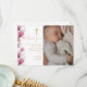 Denna eleganta rosa blomster dop dop tackkort kan anpassas med ditt speciella barn foto och tack meddelande i chic typografi . Designad av Thisisnotme