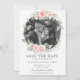 Framhäva ditt förbröllopsfoto med detta eleganta fotokort med datum för bröllop. Med en vacker delikat akvarell rosa blomster- och grönskande bladkrans. Anpassa det enkelt och snabbt med dina detaljer genom att trycka på knappen för anpassning för att ytterligare ändra stil och placering av texten.