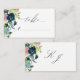 Elegant Rosa Blue Blommigt Script Monogram Bröllop Placeringskort
