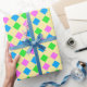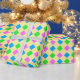 Elegant Rosa Blue Grönt Diamonds Mönster på Gult Presentpapper