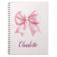"Öka anteckningen i stil med vår Elegant Rosa Bow Personlig Namn Spiral. Den här bärbara datorn har en mjuk bakgrund för rosa som är försedd med en delikat satin-stil-båge och är anpassad med ditt namn eller initialer i ett snyggt, flytande skriptteckensnitt. Perfekt för arbete, skola eller journalföring. Den här bärbara chicen kombinerar elegans med praktisk användning och skapar den som ett underbart tillägg till din kontorssamling."