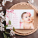 Elegant Rosa Bow & Rosary Photo Baptism Inbjudningar