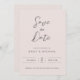 Vår elegant rosa bröllop spara datum-design skapar ett perfekt-annonskort för er minimalistiska bröllop firande. Ett vackert par av grått-skriptet med kalligrafteckensnitt med enkel och ren text på blekens rosa ger ett minimalistiskt utseende som kompletterar din snyggt. Enkel och snabb att anpassa dig med din egen händelseinformation för namn och bröllop.
