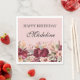 Elegant Rosa Burgundy Blommigt Grattis på födelsed Pappersservett
