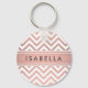 Tillbehör nycklar i stil med en modern chic runt nyckelkedja. Utformningen har en söt rosa faux guld foil chevron zig-zag mönster och rand, och ditt namn eller annan anpassad text i ett enkelt grått typografteckensnitt av mörk. Den här eleganten och trendigets tillbehör gör en snyggt till henne. Perfekt som möhippa- eller bachelorette-parti, eller som en idé om en mutad gåva.