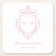 Elegant Rosa Chinoiserie Bird Vapensköld Bröllop Underlägg Papper Kvadrat