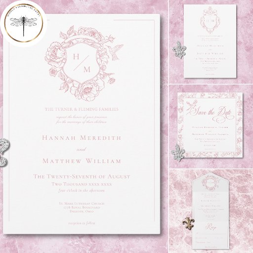 Elegant Pink Chinoiserie Bird & Crest WeddingDesignad av Kathe Santillo