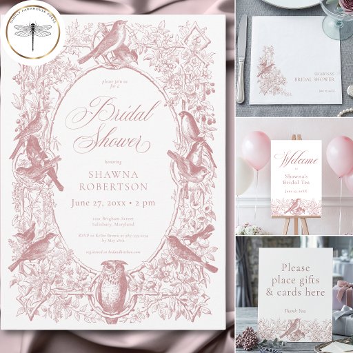 Elegant Rosa Chinoiserie Nature & Birds Shower Inbjudningar