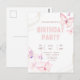 Elegant Rosa Fjäril Födelsedagsfest Inbjudan