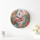 Elegant Rosa Flamingo Bird and Tropical Flowers Stor Klocka