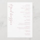 Det här bröllopsprogrammet har en minimalistisk och elegant design med en mjuk rosa färgpalett som skapar en varm och inbjudande atmosfär. Layouten är ren och välorganiserad och visar en blandning av kursiva och serif-typsnitt som ger en sofistikerad känsla åt det övergripande utseendet. Geometriska linjeaccent framställs asymmetriskt runt texten och förstärker den moderna estetiken utan att överväldiga det centrala innehållet. Perfekt för par som söker en modern men tidlös stil, fångar detta program essensen av deras speciella dag i Franklin, TN, den 29 augusti 2026.