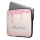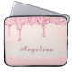 Bär din teknik med stil med detta eleganta rosa glam glitter-drypp lace bröllopsdusch laptopsleeve. Designen har kaskadformade falska rosa glitterdroppar över en mjuk, glödande bakgrund med daggiga skimrande accenter för en lyxig, modern finish. En subtil spetsdetalj längs botten lägger till en touch av feminin charm. Perfekt för skolan, arbetet eller vardaglig glamour, kan denna sleeve personifieras med ett förnamn - vilket gör det till en genomtänkt present för födelsedagar, skolstart eller stilrena hemkontorsuppgraderingar.
