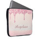 Bär din teknik med stil med detta eleganta rosa glam glitter-drypp, spetsbröllopsdusch laptopfodral. Designen har kaskadliknande falskt rosa glitter som droppar över en mjuk, glödande bakgrund med daggig glans för en lyxig, modern finish. En subtil spetsdetalj längs botten lägger till en touch av feminin charm. Perfekt för skolan, jobbet eller vardagsglam, kan detta fodral anpassas med ett förnamn - vilket gör det till en genomtänkt present för födelsedagar, skolstart eller stilrena hemkontorsuppgraderingar.