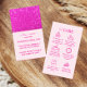 En djärv, högimpaktande design med livlig rosa glitter i kombination med en ren, modern layout. Den mjuka centrala panelen håller dina detaljer skarpa och lätta att läsa medan den gnistrande kanten tillför en oförskämd glamörenergi. Perfekt för skönhetsexperter, kreativa eller någon som vill att deras varumärke ska kännas tryggt, feminint och omöjligt att ignorera.