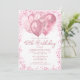 Elegant Rosa Glitter Glam Balloon Birthday Inbjudningar