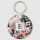 Elegant Rosa Grått Blommigt Monogram Nyckelring