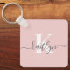 Den här enkla nyckelkedjan för rosa med elegant och det första namn i ett trendig-skriptteckensnitt i grått och det första tecknet i ett modernt teckensnitt i vitt är perfekt för nycklarna. Det är snyggt och trendig och ändå väldigt klassiskt.
