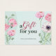 Förundra dina kunder och öka ditt varumärke med det här vackert designade presentcertifikatet, som har en mjuk grönt och en delikat blommigt för rosa och en fin fas "A Gift for You". Det här certifikatet är perfekt för små företag att tittar erbjuda ett tänkbart, professionell och elegant sätt för kunder att behandla sina nära och kära. Det här presentkortet för elegant är ett vackert sätt att erbjuda dina tjänster som gåvor, uppmuntra till upprepad affärsverksamhet och främja varumärkeslojalitet. Perfekt för salonger, boutiques, handgjorda butiker, kurorter och andra småföretag. Gör presenten enkel och vacker med det här blommigt-inspirerade presentkortet