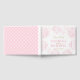 Snyggt bröllop gästblommor i bok har anpassningsbar rosa och guld monogramtext som är framtagen av vackra ljusa rosa blommor. En koordinerande vit och ljus rosa geometrisk trellis mönster visas på baksidan.