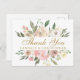 Den vackra blommigten för rosa vattenfärgspeony-söt är ett tack för att du postkort med elegant-antika guld-skript mellan det vackra gränsen av sage-grönt eucalyptus löv och blommor. Ett botaniskt bröllop-vykort i chic för att tacka dina gäster.