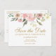 Elegant Rosa Guld Blommigt Spara datum Vykort