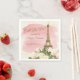 Rosa vattenfärg och guld Paris, Frankrike/Eiffel Torn Sweet 16 födelsedagsfest papper napkin med gnidig guld glitter. Personlig med ditt namn och information om party.