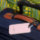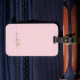 Modern chic elegant guldmonogramnamn signaturskrift anpassad personlig rosa bagagelapp. Denna känsliga design med anpassat namn i en kursiv handskriven svansfont kalligrafi (eller typografi) i guld på rosa eller babyrosa bakgrundsfärg. Dessa är lätta att anpassa. Stilig feminin present för bröllop, söt 16-årsdag, bröllopsdusch, examen och för alla som älskar glamour-stil.