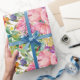 Elegant, feminin och färgstark rosa, blått och gult vattenfärgad blommigt som omsluter papper.
