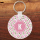 Elegant Rosa Hydragea Flowers Mönster Monogram Nyckelring