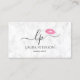 Fin och modern utformning av affärskortet med rosa vattenfärg läppar och elegant calligraphy font på en vit marble-bakgrund. Lägg bara till initialerna mellan symbolerna och anpassa texten.
