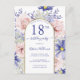 Denna eleganta blomsterinbjudan till 18-årsfest i form av ett vykort har rosa och lila blommor accentuerade med en falsk guldglitterkant för dina festdetaljer att anpassa i modern skrift. Baksidan av vykortet har ett meddelande som du kan anpassa. Designad av Susan Coffey.