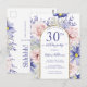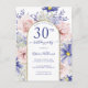 Denna eleganta blomsterinbjudan till 30-års födelsedagsfest i form av ett vykort har rosa och lila blommor med en falsk guldglitterkant för dina festdetaljer att anpassa i modern skrift. Baksidan av vykortet har ett meddelande som du kan anpassa. Designad av Susan Coffey.