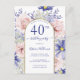 Den här blommigten i elegant, 40-årsdagen av party-vykortsinbjudan, har rosa och lila blommor accentuerat med en faux guld glitter gräns för att dina party-detaljer ska anpassas till modern stil. Baksidan av vykortet innehåller ett meddelande som du kan anpassa. Designad av Susan Coffey.