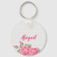 Enkelt och klassligt är den här Elegant Rosa Loely & Ro med grått och vit rand enkelsidig nyckelkedja en perfekt gåva till henne. Den rosa typografin "Abigail" kan ändras för att passa ditt namn eller favorituttryck.