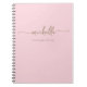 Modern Rosa Elegant Guld Monogram Namn Feminint Signatur Skruvad Anteckningsbok. Denna minimalistiska enfärgade design med ditt förnamn i en snygg handskriven typsnitts typografi med namnmall i guld på baby rosa eller ljusrosa bakgrund. Lätt att anpassa dem. Bra anpassat personligt flickaktigt present för Födelsedagsfirande, Bröllopsfest, Bröllop, SÖTA 16 Födelsedagsfirande, BABY-fest och för alla som älskar snygg minimalistisk stil.