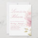 Vackra vattenfärgbilder av en rosa bukett på vit bakgrund för vår temad möhippa med blek, kraftig typografi och rosa tillbaka.