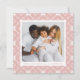 Festivt kvadratiskt kort med helgdag som innehåller ett familjefoto som är inramat i vitt, mot en rosa och vit nordisk snöflingerbakgrund. Anpassa detta charmerande julkort med anpassningsbarna hälsning och namn i familjen för att samordna rosa. Den omvända sidan ger utrymme för ditt personliga helgdag-meddelande.