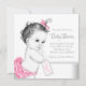 Vacker rosa och silver baby shower inbjudan. Denna söta lilla babyflicka rosa och grå baby shower inbjudan är lätt att anpassa för ditt evenemang genom att lägga till dina evenemangsuppgifter, teckensnittsstil, teckenstorlek och färg samt formulering. Observera att alla klistermärken, kort och inbjudningsdesigner du hittar på Zazzle är tryckta grafik utan faktiska juveler, band, upphöjda, präglade eller tillagda delar eller bitar.