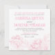Elegant och romantisk bröllopsinbjudan i rosa och pewter grått färg. Kvadratiskt kortformat. Inkluderar överordnad namn.